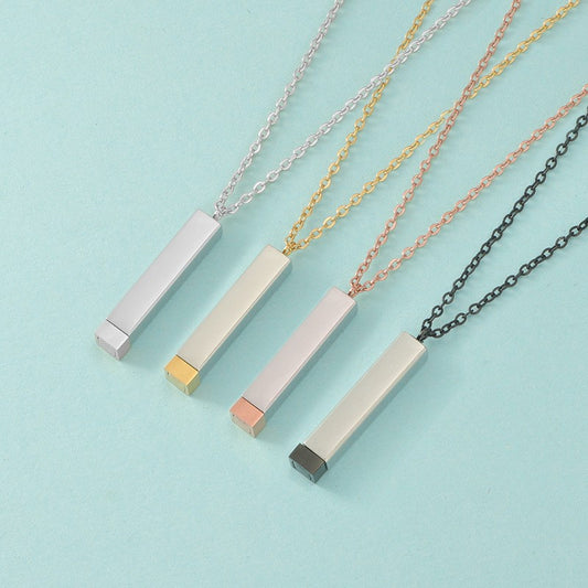 Engravable Stainless Steel Telescopic Cube Pendant Necklace (3Pcs)