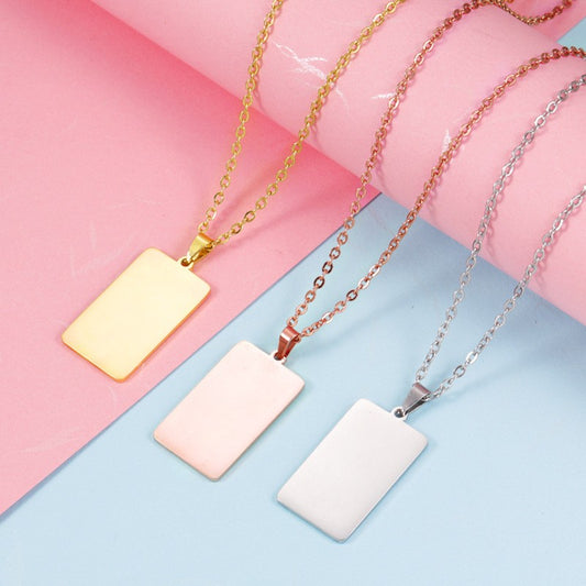 Engravable Stainless Steel Rectangle Pendant Necklace 40*10 mm (3Pcs)