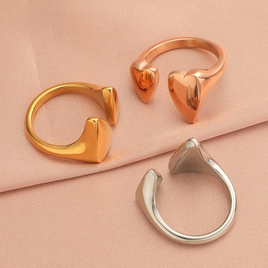 Engravable Stainless Steel Heart Open Ring (3Pcs)