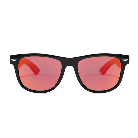 Wooden Black Frame Sunglasses with Red Polarized Lenses